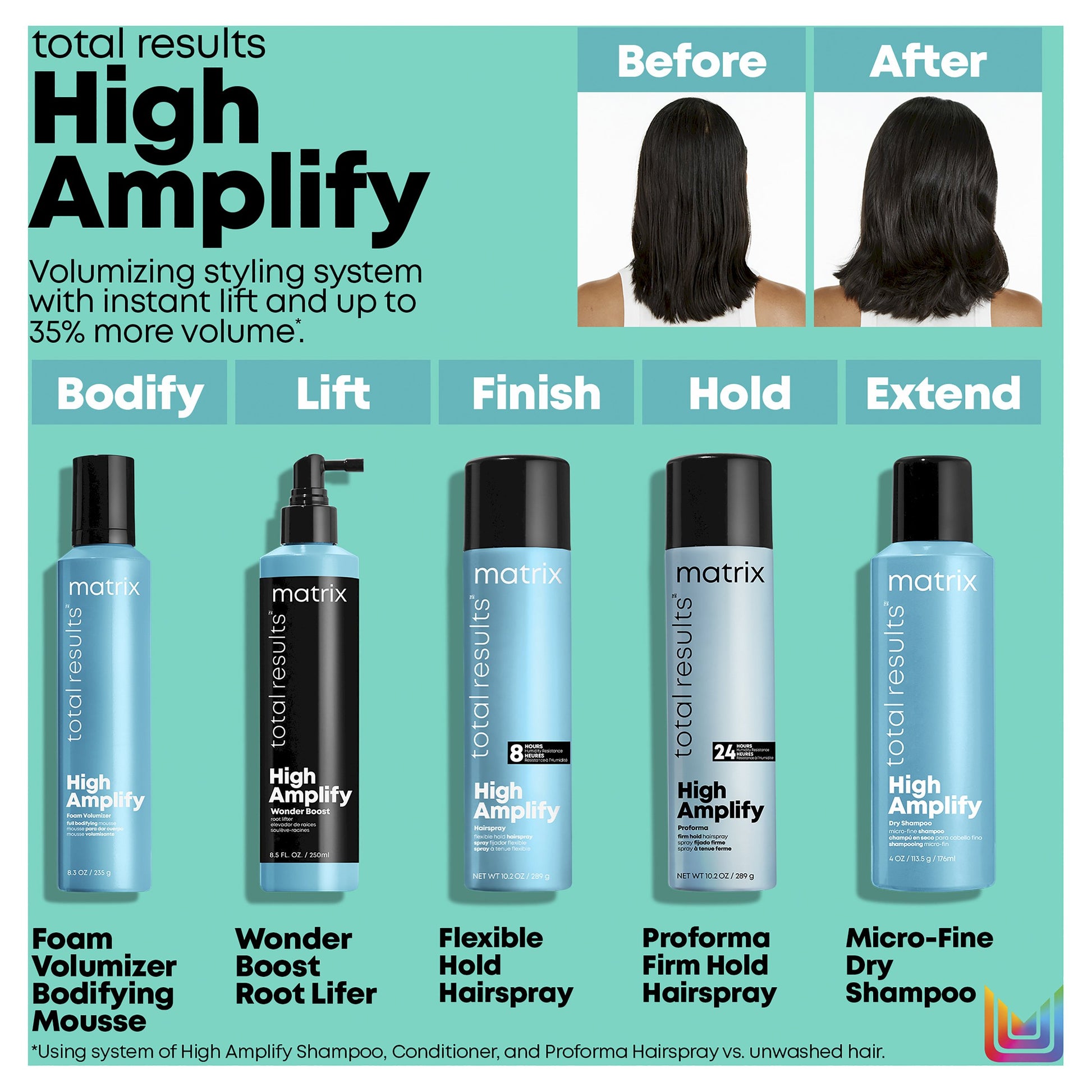 Turn up the volume on flat hair with Matrix Total Results High Amplify Conditioner! This lightweight, silicone free formula uses protein to boost the structure of fine, limp hair while providing essential moisture and nourishment. The result is instantly lifted, voluminous hair that’s soft to the touch. Experience up to a 35% boost of volume when used with Matrix High Amplify Shampoo and Wonder Boost Root Lifter.