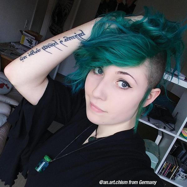 Enchanted Forest is a deep teal green hair dye with blue undertones that gives hair dark, earthy tones. This color can give virgin, unbleached hair green tones, but for best results we recommend lightening hair to medium level 7 blonde or lighter before use.