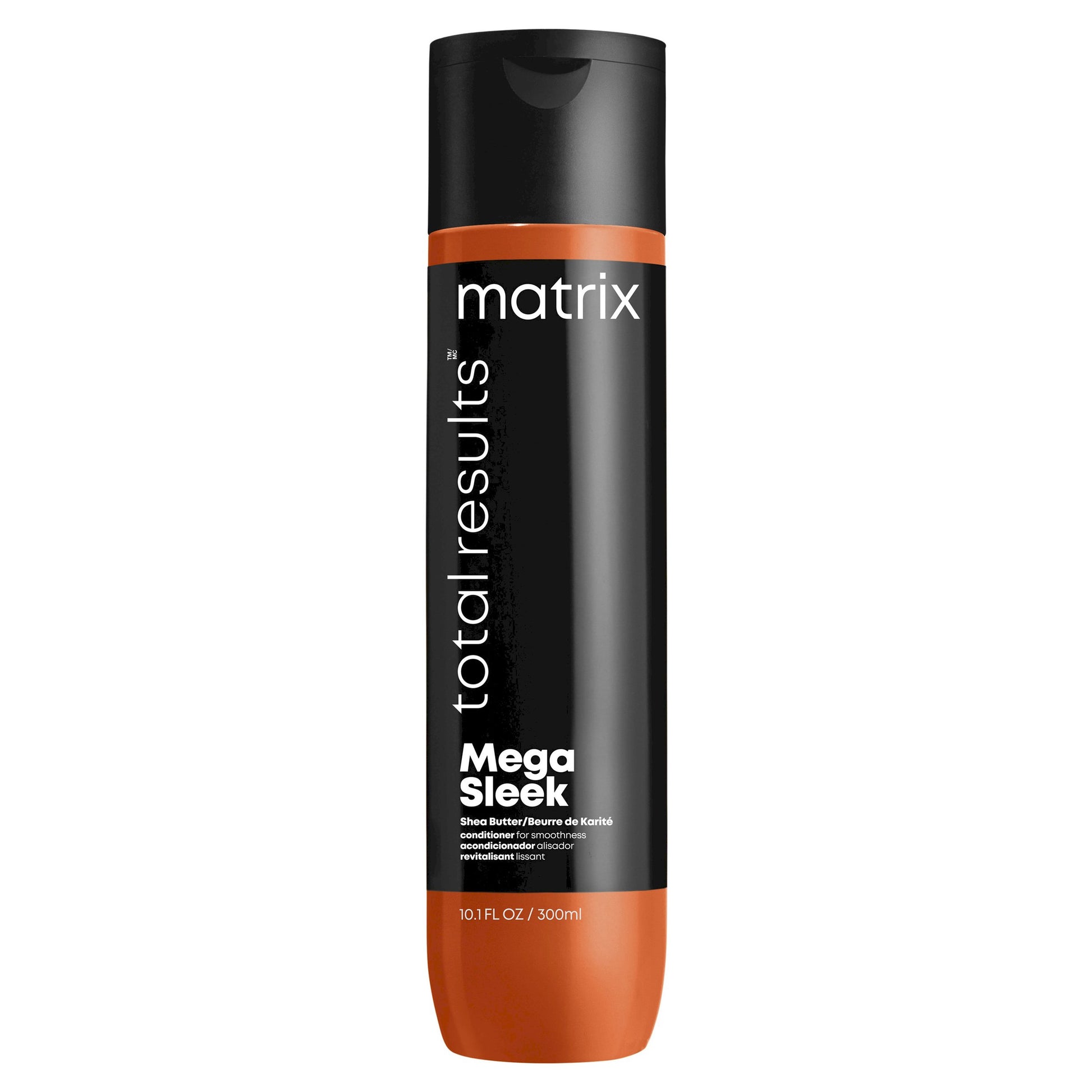 Matrix Total Results Mega Sleek Conditioner with smoothing shea butter helps control rebellious, unruly hair and manages frizz against humidity for smoothness.