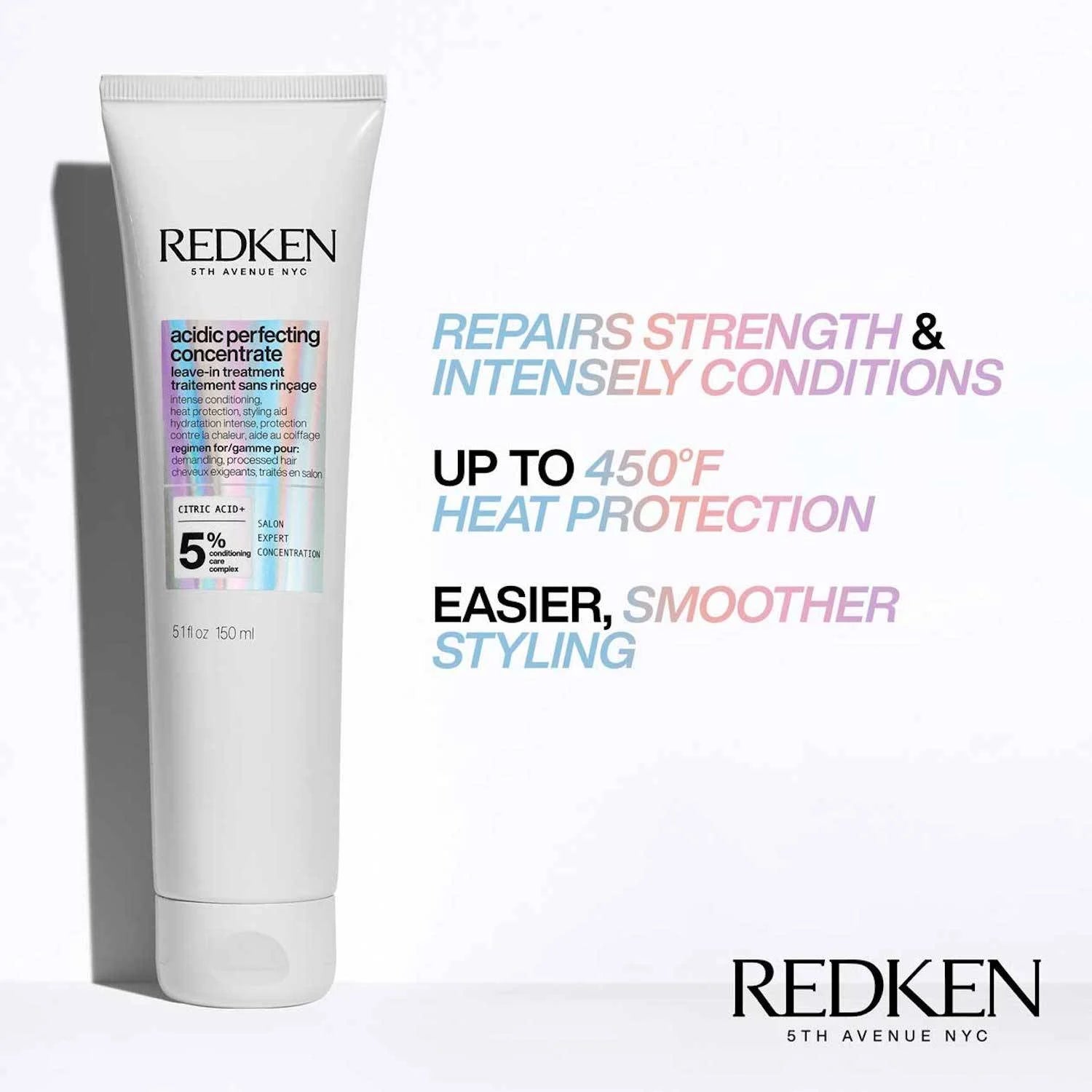 Redken Acidic Perfecting Concentrate Leave-In Conditioner is our most concentrated all-in-one formula for strength repair for all types of damaged hair. This conditioning leave-in treatment provides ultimate strength repair, intense conditioning and hair color fade protection. It's the final step in our 3-step Acidic Bonding Concentrate regimen.
